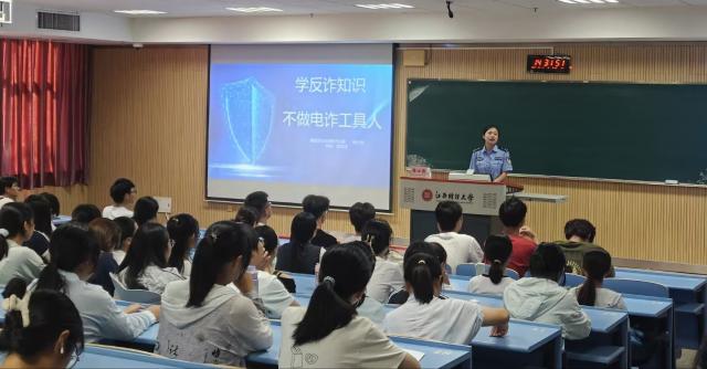 10月11日下午14时30分,为提升新生的反诈意识与风险防范能力,银河娱乐集团-银河娱乐博彩-银河娱乐官网 纪保部在第三教学楼3105教室组织举办了反诈知识宣传讲座。本次讲座特别邀请南昌市公安局杨心怡警官担任主讲人,2025级新生参与讲座。