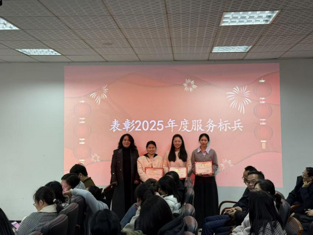 为表彰先进、树立标杆,大会对2025年度表现突出的教职工予以表彰。过去一年,全院教职工立足本职岗位、主动担当作为,以攻坚克难的韧劲突破发展难题,以精益求精的态度争创一流业绩,取得了一系列亮眼成果。匡琳宣读2025年度院级标兵名单,罗远胜副院长、汪靖副院长及匡琳分别为院级教学标兵、科研标兵、服务标兵颁奖,现场掌声雷动,充分彰显了银河娱乐集团 崇尚先进、激励奋进的优良风气。